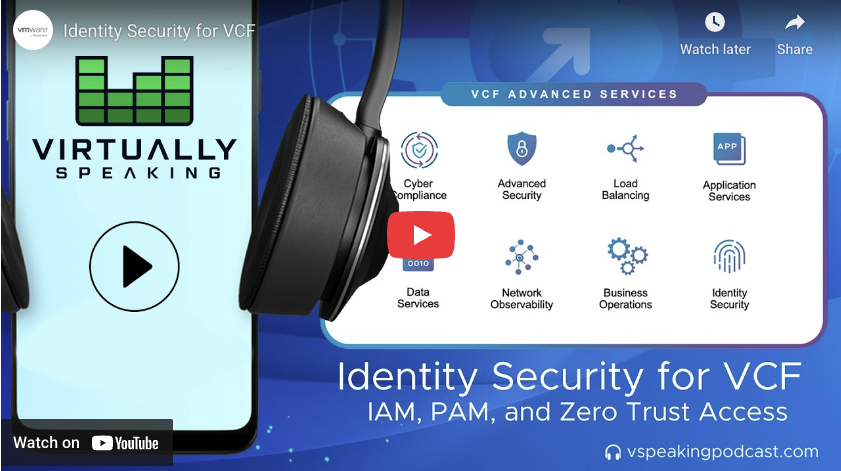 Identity is now the primary security perimeter. In the latest episode of the Virtually Speaking Podcast, we sat down with Lee Howard, Head of IAM Product Management at Broadcom, to explore how Identity Security for VMware Cloud Foundation (VCF) enables secure, scalable, zero trust access across modern private cloud environments. This episode is part of … Continued The post Identity Security for VMware Cloud Foundation – IAM, PAM, and Zero Trust Access appeared first on VMware Cloud Foundation…Read More
