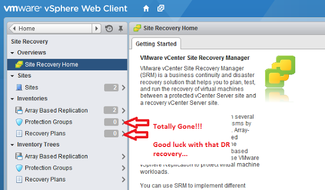 VMware have not shouted about this one as much as they should have, given the potential gravity of the situation. If you use linked mode to connect multiple sites and have SRM 5.8.0.1 installed, then you will not be able to run an SRM recovery when you have the sites disconnected. As in, when you are experiencing a disaster which you want to recover from as quickly and painlessly as possible, as in, precisely what you purchased SRM for in the first place, you’re out of luck. So, if you are…Read More