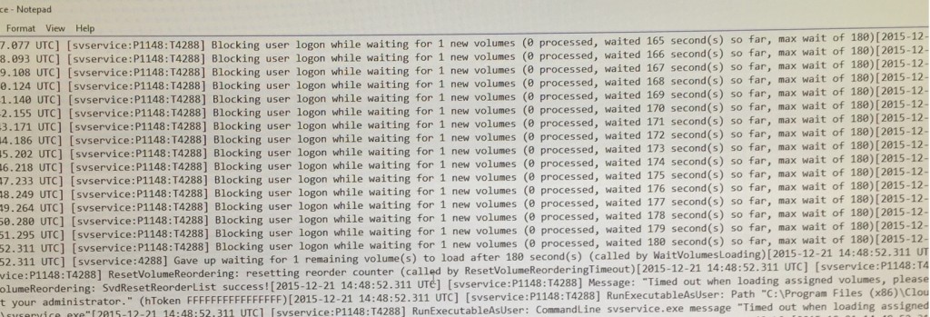 App Volumes – Blocking user logon while waiting