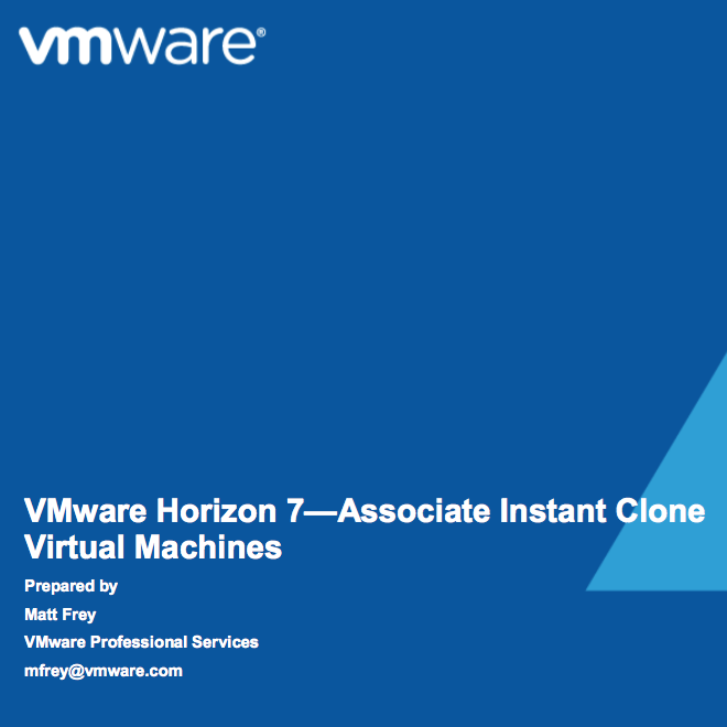 This white paper, “VMware Horizon 7 – Associate Instant Clone Virtual Machines,” contains instructions on how to conduct day-to-day operations after implementing the design described in the VMware Horizon 6 Architecture Design document.
