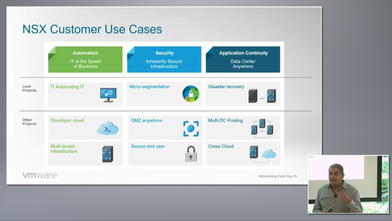 Milin Desai, Vice President of Products, NSBU at VMware, gives the delegates an overview of NSX, including the rationale behind it’s development, and how people are using it. NSX operates with a focus on applications, by decoupling them from the concerns of underlying architecture, which allows for better automation and security. Recorded at Networking Field Day in Silicon Valley on April 6, 2017. For more information, please visit WMware.com/products/NSX.html/ or TechFieldDay.com/event/nfd15/