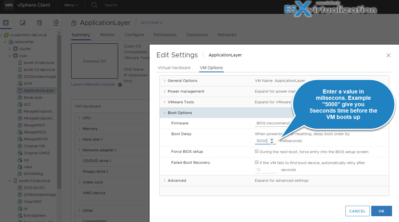 Increase Boot Delay to Edit the BIOS of a VM – ESX Virtualization