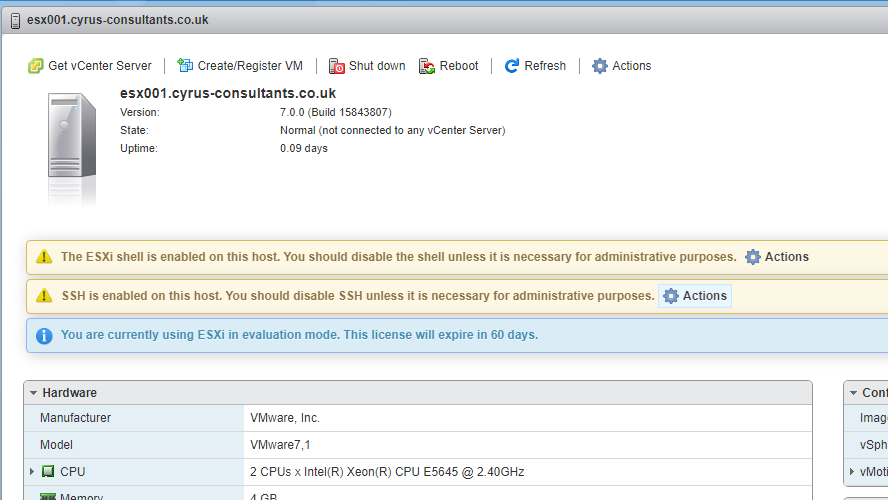 Learn how to suppress Configuration Issues and Warnings Alert displayed in Summary status for ESXi 7.0 after enabling SSH or ESXi Shell. from the expert community at Experts Exchange
