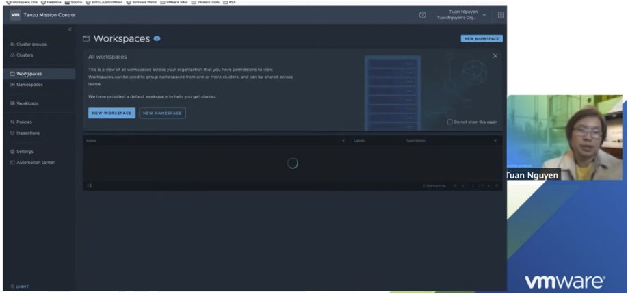 A demo of Tanzu Service Mesh and Mission Control working together to manage a microservices application deployed on Kubernetes clusters stretched across multiple clouds.