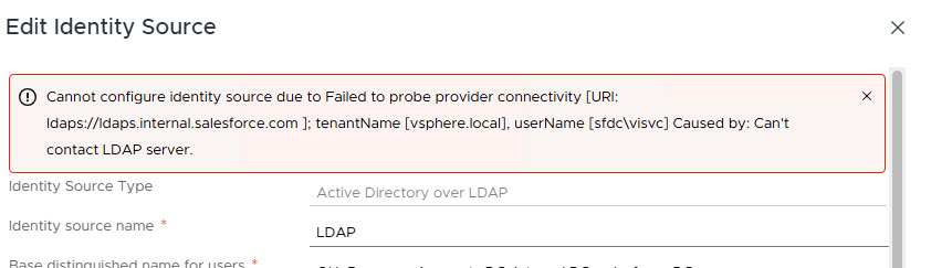 Fixing “Cannot configure identity source due to Failed to probe provider connectivity… Can’t contact LDAP server” in vCenter after LDAPS Certificate Renewal